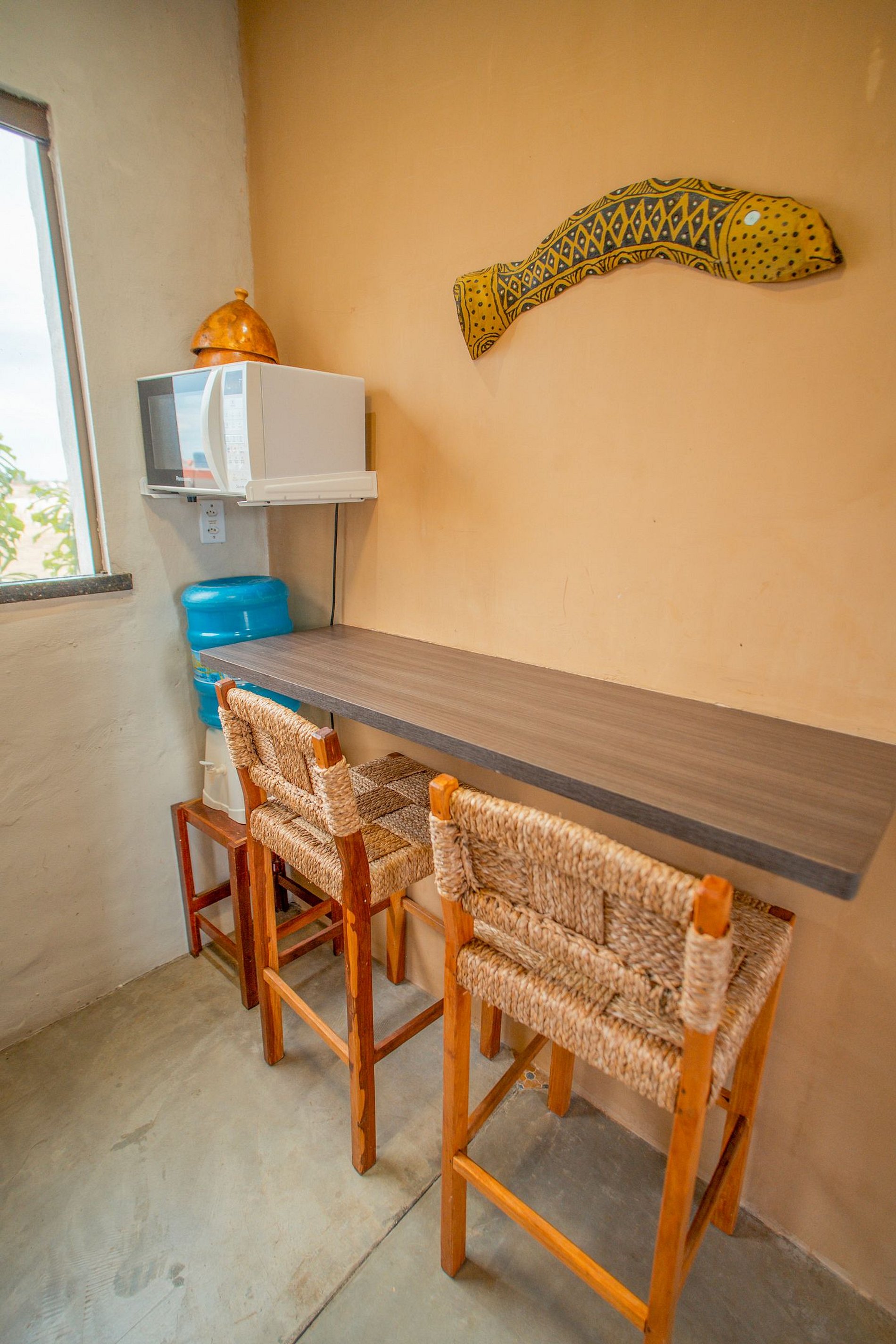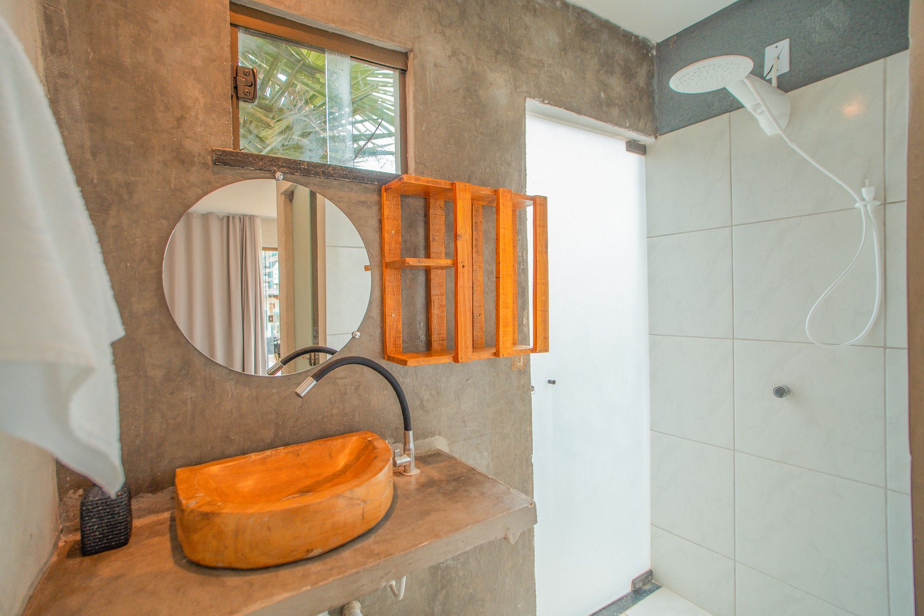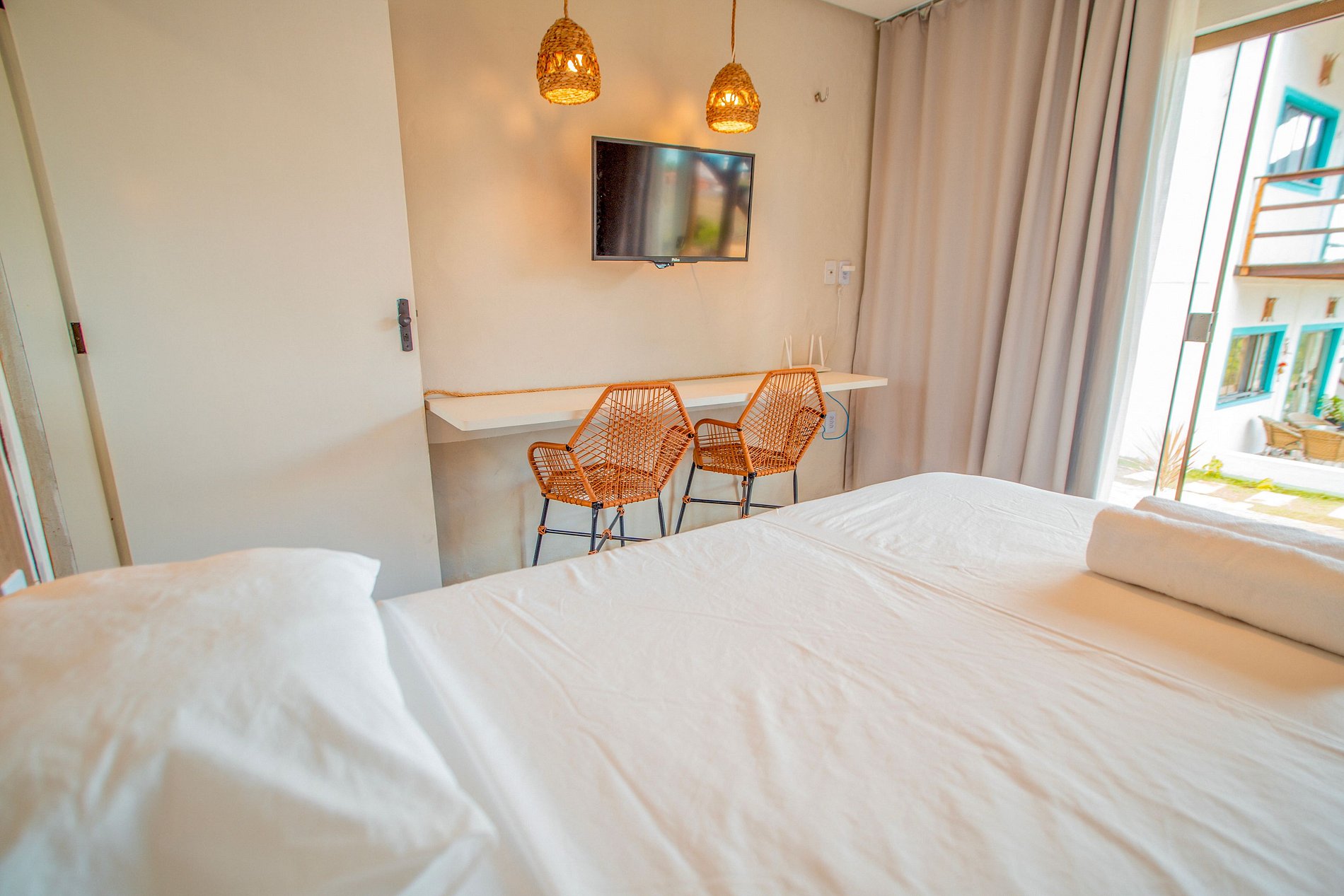 Situado no condomínio Amanita Kite Home, o studio conta com uma decoração praiana, com reboco rústico e tem: