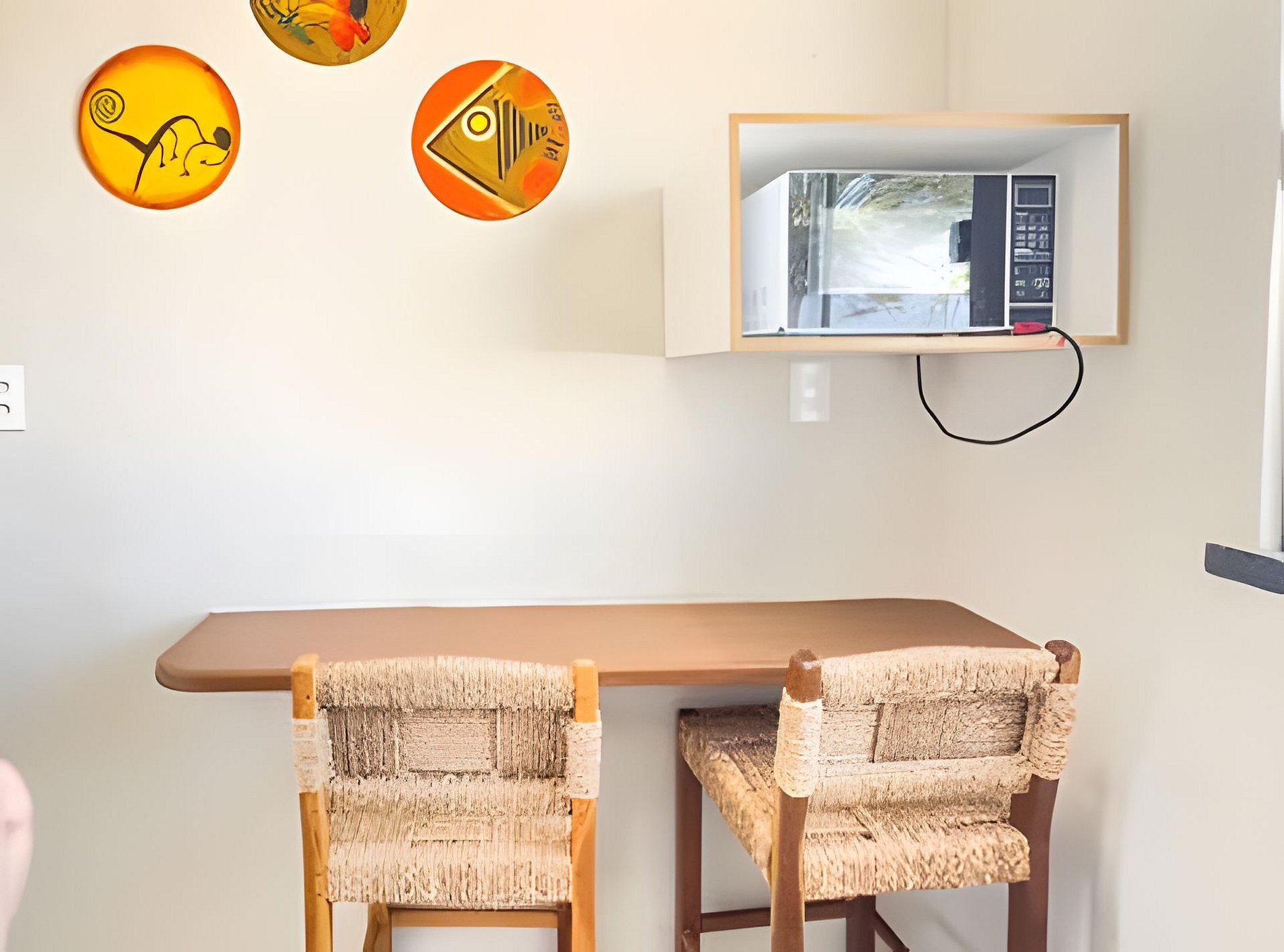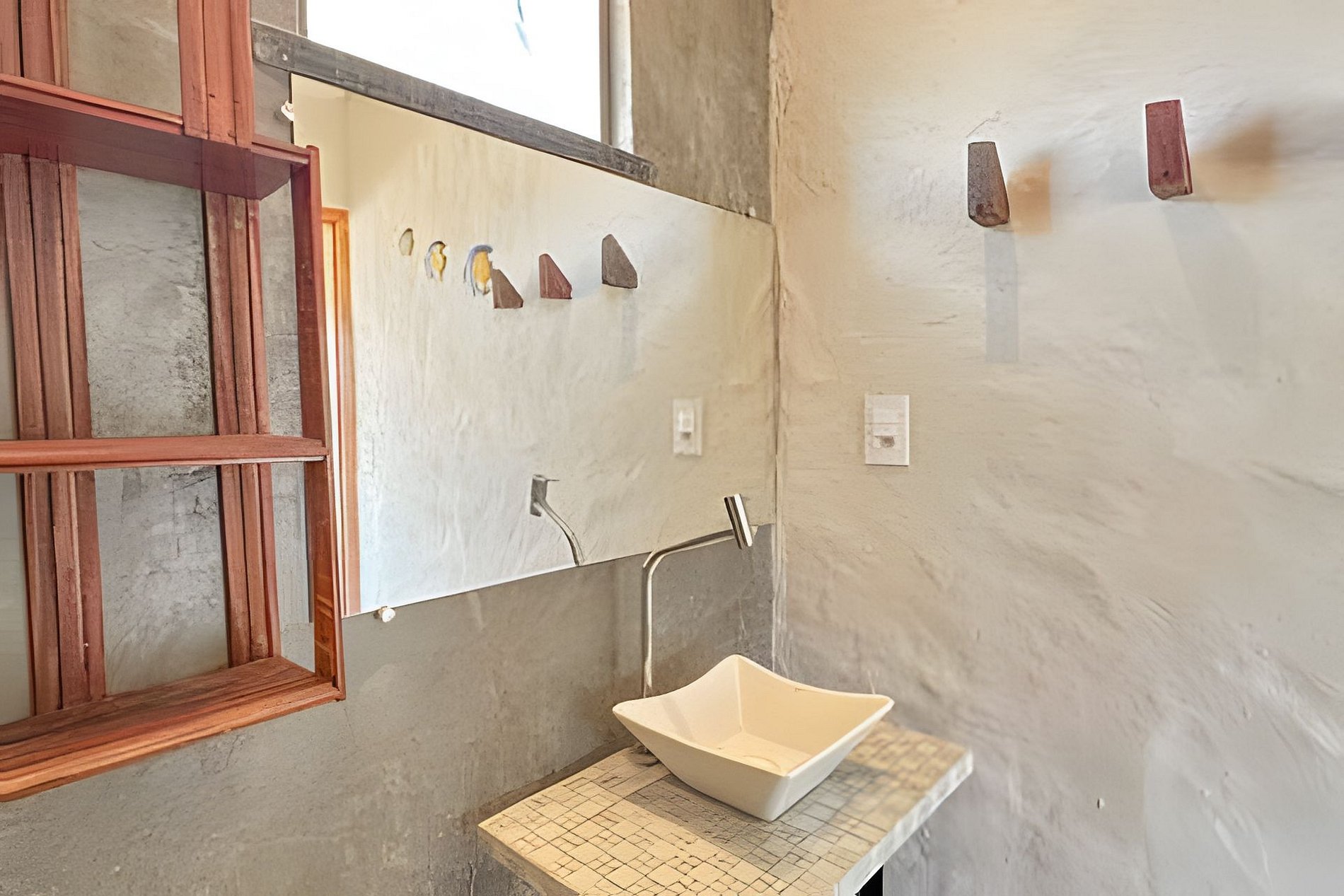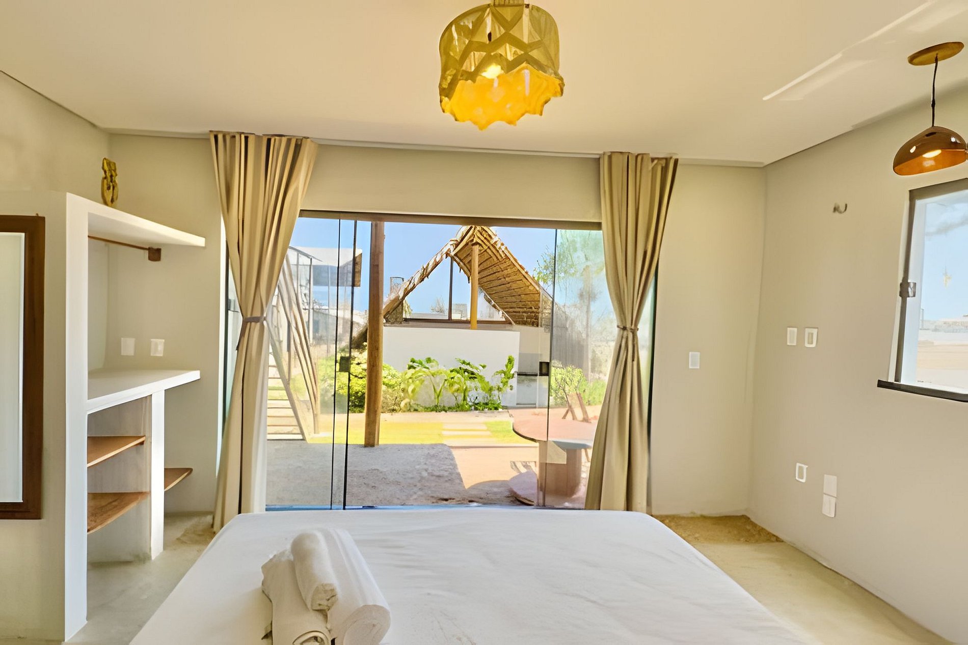 Situado no condomínio Amanita Kite Home, o studio conta com uma decoração praiana, com reboco rústico e tem: