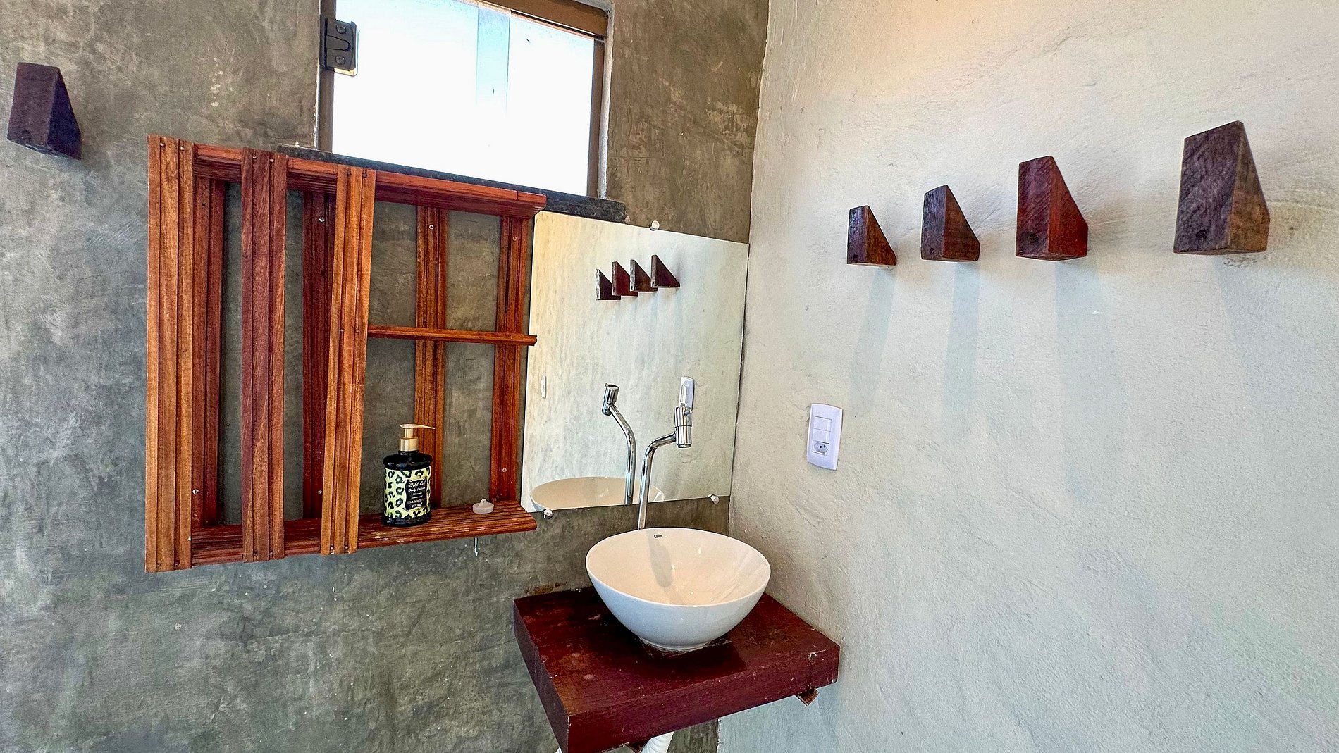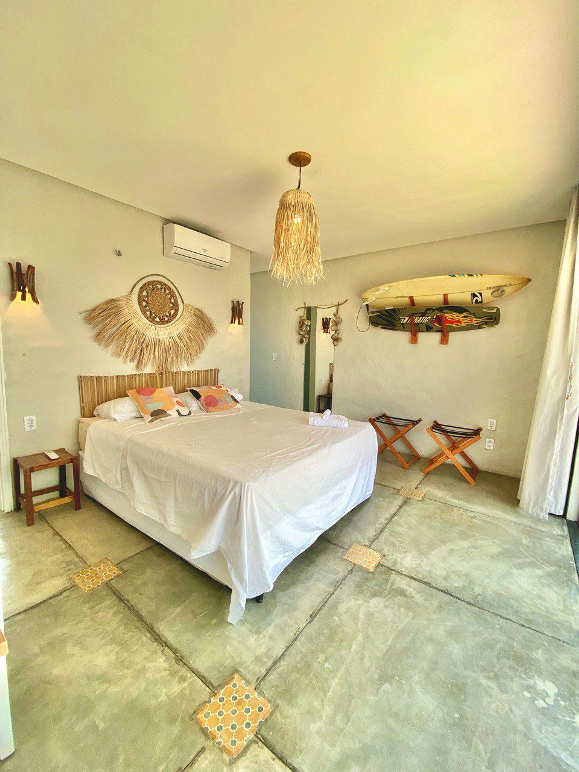 Situado no condomínio Amanita Kite Home, o studio conta com uma decoração praiana, com reboco rústico e tem: