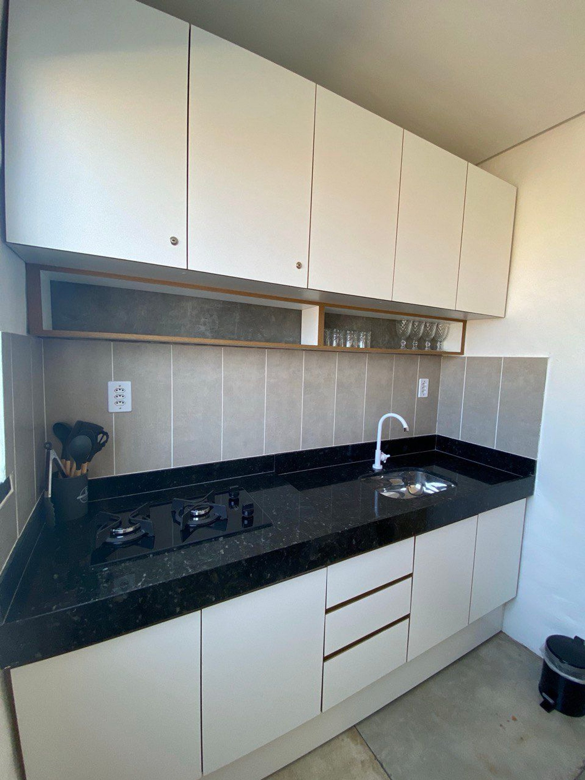 - cozinha equipada com microondas, frigobar, fogão, liquidificador, sanduicheira, panelas e talheres;